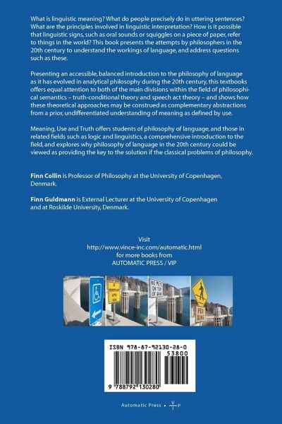 What is linguistic meaning? What do people precisely do in uttering sentences? What are the principles involved in linguistic interpretation? How is it possible that linguistic signs, such as oral sounds or squiggles on a piece of paper, refer to things in the world? This book presents the attempts by philosophers in the 20th century to understand the workings of language, and address questions such as these. Presenting an accessible, balanced introduction to the philosophy of language as it has evolved in analytical philosophy during the 20th century, this textbooks offers equal attention to both of the main divisions within the field of philosophical semantics -truth-conditional theory and speech act theory - and shows how these theoretical approaches may be construed as complementary abstractions from a prior, undifferentiated understanding of meaning as defined by use. Meaning, Use and Truth offers students of philosophy of language, and those in related fields such as logic and linguistics, a comprehensive introduction to the field, and explores why philosophy of language in the 20th century could be viewed as providing the key to the solution if the classical problems of philosophy. Finn Collin is Professor of Philosophy at the University of Copenhagen, Denmark. Finn Guldmann is External Lecturer at the University of Copenhagen and at Roskilde University, Denmark.