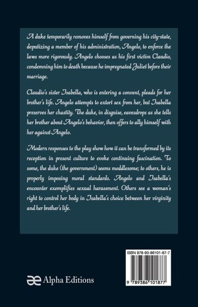 A duke temporarily removes himself from governing his city-state, deputizing a member of his administration, Angelo, to enforce the laws more rigorously. Angelo chooses as his first victim Claudio, condemning him to death because he impregnated Juliet before their marriage. Claudio's sister Isabella, who is entering a convent, pleads for her brother's life. Angelo attempts to extort sex from her, but Isabella preserves her chastity. The duke, in disguise, eavesdrops as she tells her brother about Angelo's behavior, then offers to ally himself with her against Angelo. Modern responses to the…mehr