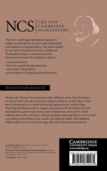 The New Cambridge Shakespeare appeals to students worldwide for its up-to-date scholarship and emphasis on performance. The series features line-by-line commentaries and textual notes on the plays and poems. Introductions are regularly refreshed with accounts of new critical, stage and screen interpretations. For this second edition of Measure for Measure Angela Stock has written a new introductory section that takes account of recent scholarly criticism and important contemporary productions on stage and film. The edition retains the text prepared by Brian Gibbons together with his comprehensive introduction, in which he shows how the play's critical reception and stage history varies from one period to the next according to the prevailing social, moral and religious issues of the day. Gibbons explores the thrilling experience of watching the play in performance, with its shocking reversals and surprises, great tragic poetry and exuberant comic prose. An updated reading list completes the edition.