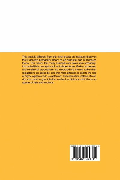 This book was planned originally not as a work to be published, but as an excuse to buy a computer, incidentally to give me a chance to organize my own ideas ~n what measure theory every would-be analyst should learn, and to detail my approach to the subject. When it turned out that Springer-Verlag thought that the point of view in the book had general interest and offered to publish it, I was forced to try to write more clearly and search for errors. The search was productive. Readers will observe the stress on the following points. The application of pseudometric spaces. Pseudo metric, rather than metric spaces, are applied to obviate the artificial replacement of functions by equivalence classes, a replacement that makes the use of "almost everywhere" either improper or artificial. The words "function" and "the set on which a function has values at least E" can be taken literally in this book. Pseudometric space properties are applied in many contexts. For example, outer measures are used to pseudometrize classes of sets and the extension of a finite measure from an algebra to a 0" algebra is thereby reduced to finding the closure of a subset of a pseudo metric space.