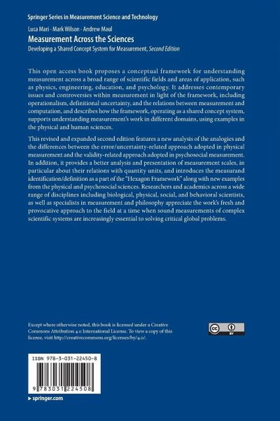 This open access book proposes a conceptual framework for understanding measurement across a broad range of scientific fields and areas of application, such as physics, engineering, education, and psychology. It addresses contemporary issues and controversies within measurement in light of the framework, including operationalism, definitional uncertainty, and the relations between measurement and computation, and describes how the framework, operating as a shared concept system, supports understanding measurement's work in different domains, using examples in the physical and human sciences.