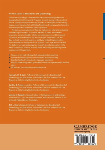 Measurement instruments are essential in medicine to assess the severity of diseases, monitor health status or evaluate the effects of interventions. Learn how to improve these measurements with this book, which provides handholds for the development and evaluation of measurement instruments in all clinical disciplines.