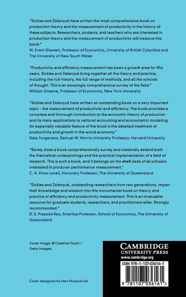 Preface Introduction 1. Production theory: primal approach 2. Production theory: dual approach 3. Efficiency measurement 4. Productivity indexes: part 1 5. Aggregation 6. Functional forms 7. Productivity indexes: part 2 8. Envelopment-type estimators 9. Statistical analysis for DEA and FDH: Part 1 10. Statistical analysis for DEA and FDH: part 2 11. Cross-sectional stochastic frontiers 12. SF models-first generation panel approaches 13. SF models-second generation approaches 14. Endogeneity 15. Dynamic models 16. Shape restrictions and model averaging 17. Measurement, KLEMS, and other data Afterword.