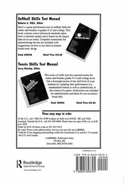 This inaugural issue is devoted to exploring measurement, research design, and statistics issues in six subdisciplines of exercise and sport science. Originally presented at the Eighth Measurement and Evaluation Symposium, all papers in this issue reflect the work of many renowned measurement specialists and content experts in their respective fields. The articles discuss the following topics: * standards of assessment quality for physical educators and the problem of providing adequate assessment without adequate resources; * the importance of properly conceptualizing and defining appropriate research questions as the "source and solution" for measurement and design issues in reference to motor learning/control and sport and exercise psychology; * the study of individuals -- single-subject and other small-sample designs -- in contrast to the more traditional study of groups; and * the importance of computing and reporting statistical power in research.
