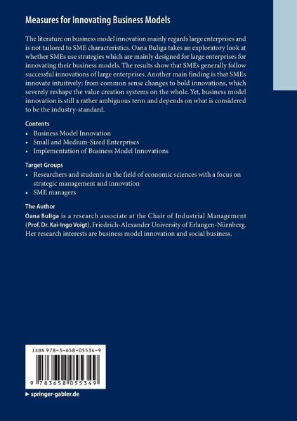 The literature on business model innovation mainly regards large enterprises and is not tailored to SME characteristics. Oana Buliga takes an exploratory look at whether SMEs use strategies which are mainly designed for large enterprises for innovating their business models. The results show that SMEs generally follow successful innovations of large enterprises. Another main finding is that SMEs innovate intuitively: from common sense changes to bold innovations, which severely reshape the value creation systems on the whole. Yet, business model innovation is still a rather ambiguous term and depends on what is considered to be the industry-standard.