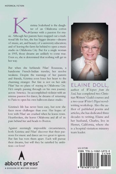 Kristina Soderlund is the daughter of an Oklahoma cotton farmer with a passion for music. Although her parents have mapped out a traditional life for her, she has bigger dreams-dreams of music, art, and beauty; of a university education; and of leaving the farm far behind to open a music studio in Oklahoma City. But for a single woman in 1905, those dreams are unlikely to come true. Even so, she is determined that nothing will get in her way. But when she befriends Pilan' Rousseau, a handsome French-Indian traveler, her resolve weakens. Despite the warnings of her parents and friends, Kristina soon loses her heart to the charming stranger. But fate is not on her side: Pilan' has no plans of staying in Oklahoma City. He's simply passing through on his own journey across America. An accomplished violinist with an intense passion for dance, he dreams of returning to Paris to open his own ballroom dance studio. Kristina's life has never been easy, but now she faces more challenges than ever. Her hopes of love with Pilan' are crushed when he leaves town. Heartbroken, she leaves Oklahoma and all of its pain behind her and heads to Boston. Against seemingly impossible circumstances, both Kristina and Pilan' discover that their passions for music and dance are too great to ignore. But fate has torn them apart. Each will pursue their dreams, but will they be satisfied by ambition-or love?