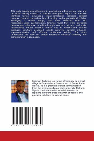 This study investigates adherence to professional ethics among print and broadcast media journalists in Makurdi Metropolis, Nigeria. The research identifies factors influencing ethical compliance, including political pressure, financial constraints, lack of training, and organizational policies. Employing a survey design, data were collected from 382 respondents using questionnaires. Findings reveal that while journalists demonstrate adherence to ethics through accuracy, fairness, and social responsibility, ethical breaches remain due to external and internal pressures. Solutions proposed include removing political influence, improving salaries, and offering continuous training. The study underscores the need for ethical reforms to enhance credibility and professionalism in journalism.