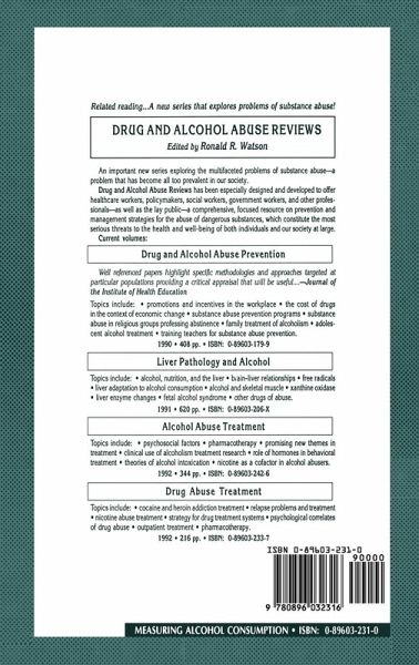 Measuring Alcohol Consumption ...is an excellent resource for all those interested, at either a research or clinical level, in alcohol use and misuse ...highly organized, cohesive, integrated and practical...This superbly organized, thorough, and readable book is highly recommended for all those who need to assess alcohol intake. -The Journal of Clinical Pathology