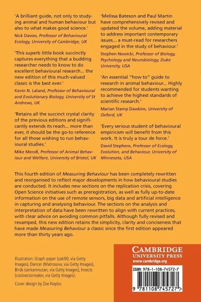 Measuring Behaviour is the established go-to text for anyone interested in scientific methods for studying the behaviour of animals or humans. It is widely used by students, teachers and researchers in a variety of fields, including biology, psychology, the social sciences and medicine. This new fourth edition has been completely rewritten and reorganised to reflect major developments in how behavioural studies are conducted. It includes new sections on the replication crisis, covering Open Science initiatives such as preregistration, as well as fully up-to-date information on the use of remote sensors, big data and artificial intelligence in capturing and analysing behaviour. The sections on the analysis and interpretation of data have been rewritten to align with current practices, with advice on avoiding common pitfalls. Although fully revised and revamped, this new edition retains the simplicity, clarity and conciseness that have made Measuring Behaviour a classic since the first edition appeared more than 30 years ago.