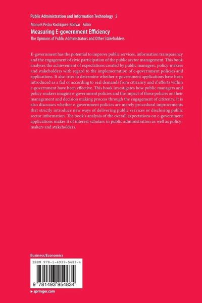 E-government has the potential to improve public services, information transparency, and the engagement of civic participation of the public sector management. This book analyzes the achievement of expectations created by public managers, policy-makers, and stakeholders with regard to the implementation of e-government policies and applications. It also tries to determine whether e-government applications have been introduced as a fad or according to real demands from citizenry and if efforts within e-government have been effective. This book investigates how public managers and policy-makers imagine e-government policies and the impact of those policies on their management and decision-making process through the engagement of citizenry. It is also discusses whether e-government policies are merely procedural improvements that strictly introduce new ways of delivering public services or disclosing public sector information. The book's analysis of the overall expectations on e-government applications makes it of interest to scholars in public administration as well as to policy-makers and stakeholders.
