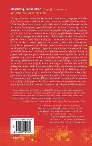 Dreher, Gaston and Martens have produced the most systematicand comprehensive research I have seen on both measuring globalisation and analyzing its impact on the most important social and economic issues of our time. Globalisation research is a dense thicket. This books stands out among its many thorns.