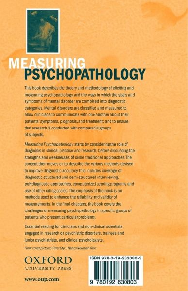 Measuring Psychopathology describes the methods by which the signs and symptoms of mental disorder are elicited. Written for the non-clinical researcher as well as for those with clinical experience, the authors start by considering the question "what is psychopathology?" They tehn employ a historical perspective to explain why and how mental disorders are currently classified, and how the use of an operational approach to diagnosis was adopted. The use of operational crtieria to define psychiatric disorder has facilitated the development of standardised interviewing techniques, questionnaires and rating scales. These tools are all covered in some detail, not only with regard to adults with mental disorders, but also with reference to special and challenging groups such as children and the elderly, and those with a learning disability, substance misuse, or who have a personality disorder. The strengths and weaknesses of current methodologies are explored and debated as well as the future diagnostic needs for research in the 21st century. Essential reading for clinicians and non-clinical scientists engaged in research on psychiatric disorders, trainees and junior psychiatrists, and clinical psychologists.