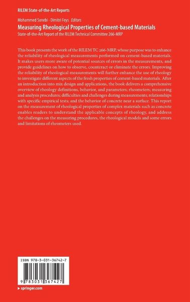 This book presents the work of the RILEM TC 266-MRP, whose purpose was to enhance the reliability of rheological measurements performed on cement-based materials. It makes users more aware of potential sources of errors in the measurements, and provide guidelines on how to observe, counteract or eliminate the errors. Improving the reliability of rheological measurements will further enhance the use of rheology to investigate different aspects of the fresh properties of cement-based materials. After an introduction into mix design and applications, the book delivers a comprehensive overview of rheology definitions, behavior, and parameters; rheometers; measuring and analysis procedures; difficulties and challenges during measurements; relationships with specific empirical tests; and the behavior of concrete near a surface. This report on the measurement of rheological properties of complex materials such as concrete enables readers to understand the applicable concepts of rheology, and address the challenges on the measuring procedures, the rheological models and some errors and limitations of rheometers used.
