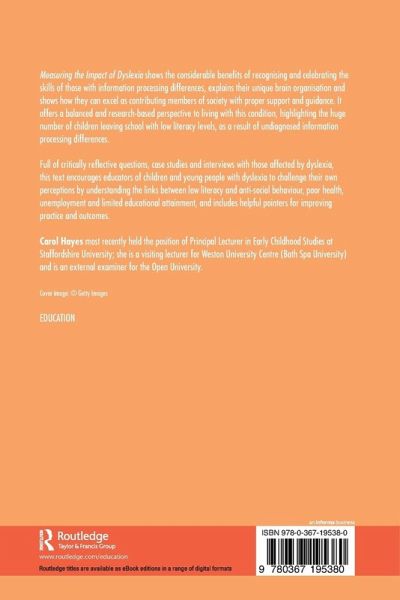 Measuring the Impact of Dyslexia shows the considerable benefits of recognising and celebrating the skills of those with information processing differences, explains their unique brain organisation and shows how they can excel as contributing members of society with proper support and guidance. It offers a balanced and research-based perspective to living with this condition, highlighting the huge number of children leaving school with low literacy levels, as a result of undiagnosed information processing differences. Full of critically reflective questions, case studies and interviews with those affected by dyslexia, this text encourages educators of children and young people with dyslexia to challenge their own perceptions by understanding the links between low literacy and anti-social behaviour, poor health, unemployment and limited educational attainment, and includes helpful pointers for improving practice and outcomes. This accessible and readable text is aimed at students, practitioners, researchers and experienced professionals in a range of disciplines to enhance CPD. It is particularly relevant for students working on both taught and research based masters degrees, especially programmes related to specific learning difficulties.