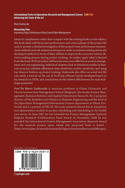 Meant to complement rather than compete with the existing books on the subject, this book deals with the project performance and control phases of the project life cycle to present a detailed investigation of the project's time performance measurement methods and risk analysis techniques in order to evaluate existing and newly developed methods in terms of their abilities to improve the corrective actions decision-making process during project tracking. As readers apply what is learned from the book, EVM practices will become even more effective in project management and cost engineering. Individual chapters look at simulation studies in forecast accuracy; schedule adherence; time sensitivity; activity sensitivity; and using top-down or bottom-up project tracking. Vanhoucke also offers an actual real-life case study, a tutorial on the use of ProTrack software (newly developed based on his research) in EVM, and conclusions on the relative effectiveness for each technique presented.