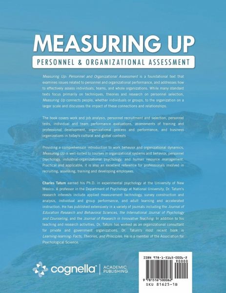 Measuring Up: Personnel and Organizational Assessment is a foundational text that examines issues related to personnel and organizational performance, and addresses how to effectively assess individuals, teams, and whole organizations. While many standard texts focus primarily on techniques, theories and research on personnel selection, Measuring Up connects people, whether individuals or groups, to the organization on a larger scale and discusses the impact of these connections and relationships. The book covers work and job analysis, personnel recruitment and selection, personnel tests, individual and team performance evaluations, assessments of training and professional development, organizational process and performance, and business organizations in today's cultural and global contexts. Providing a comprehension introduction to work behavior and organizational dynamics, Measuring Up is well-suited to courses in organizational systems and behavior, personnel psychology, industrial-organizational psychology, and human resource management. Practical and applicable, it is also an excellent reference for professionals involved in recruiting, assessing, training and developing employees. Charles Tatum earned his Ph.D. in experimental psychology at the University of New Mexico. A professor in the Department of Psychology at National University, Dr. Tatum's research interests include applied measurement technology, survey construction and analysis, individual and group performance, and adult learning and accelerated instruction. He has published extensively in a variety of journals including the Journal of Education Research and Behavioral Sciences, the International Journal of Psychology and Counseling, and the Journal of Research in Innovative Teaching. In addition to his teaching and research activities, Dr. Tatum has worked as an organizational consultant for private and government organizations. Dr. Tatum's most recent book is Learning-learning: Facts, Theories, and Principles. He is a member of the Association for Psychological Science.