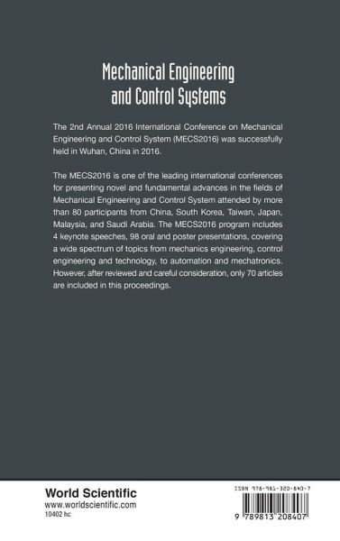 The 2nd Annual 2016 International Conference on Mechanical Engineering and Control System (MECS2016) was successfully held in Wuhan, China in 2016. The MECS2016 is one of the leading international conferences for presenting novel and fundamental advances in the fields of Mechanical Engineering and Control System attended by more than 80 participants from China, South Korea, Taiwan, Japan, Malaysia, and Saudi Arabia. The MECS2016 program includes 4 keynote speeches, 98 oral and poster presentations, covering a wide spectrum of topics from mechanics engineering, control engineering and technology, to automation and mechatronics. However, after reviewed and careful consideration, only 70 articles are included in this proceedings.