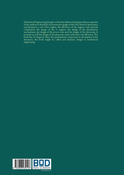 Mechanical Engineering Design I, is the first edition of a largest old preocupation of the authors in this field. It presents the design of the Otto Motors, kinematics and dynamics, a new Otto engine, the efficiency of the engines with internal combustion, the design of the V engines, the design of the distribution mechanisms, the design of the power train and the design of the drivetrain. It presents as well the design of the planetary trains with their real efficiency. The book has 14 chapters. Since the predominant component in all chapters is the dynamics, the book might be called and dynamic design in mechanical engineering.