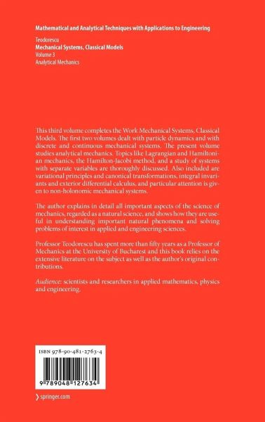 All phenomena in nature are characterized by motion. Mechanics deals with the objective laws of mechanical motion of bodies, the simplest form of motion. In the study of a science of nature, mathematics plays an important rôle. Mechanics is the first science of nature which has been expressed in terms of mathematics, by considering various mathematical models, associated to phenomena of the surrounding nature. Thus, its development was influenced by the use of a strong mathematical tool. As it was already seen in the first two volumes of the present book, its guideline is precisely the…mehr