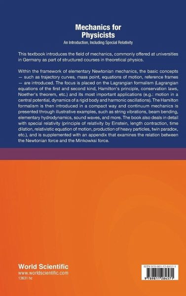 This textbook introduces the field of mechanics, commonly offered at universities in Germany as part of structured courses in theoretical physics. Within the framework of elementary Newtonian mechanics, the basic concepts - such as trajectory curves, mass point, equations of motion, reference frames - are introduced. The focus is placed on the Lagrangian formalism (Lagrangian equations of the first and second kind, Hamilton's principle, conservation laws, Noether's theorem, etc.) and its most important applications (e.g.: motion in a central potential, dynamics of a rigid body and harmonic oscillations). The Hamilton formalism is then introduced in a compact way and continuum mechanics is presented through illustrative examples, such as string vibrations, beam bending, elementary hydrodynamics, sound waves, and more. The book also deals in detail with special relativity (principle of relativity by Einstein, length contraction, time dilation, relativistic equation of motion, production of heavy particles, twin paradox, etc.), and is supplemented with an appendix that examines the relation between the Newtonian force and the Minkowksi force.