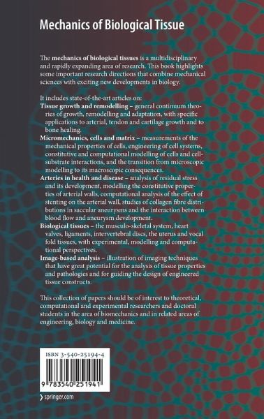 The mechanics of biological tissues is a multidisciplinary and rapidly expanding area of research. This book highlights some important research directions that combine mechanical sciences with exciting new developments in biology.