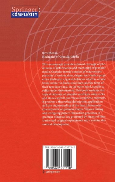 This monograph provides a broad coverage of phenomena of deformation and machining of granular media. Granular matter consists of macroscopic particles of various sizes, shapes, and surface properties leading to a typical behavior which is, on one hand, similar to fluids since they take the form of their repository and, on the other hand, similar to solids under deformation. This book analyses this typical behavior of granular media for soils, rocks and stones, metals and various synthetic materials. It presents a theoretical description, applications and the understanding of the basic phenomena characteristic of granular matter. Various mixing and intriguing pattern-formation processes in granular materials are presented by means of illustrative and original experiments and a concise theoretical development.
