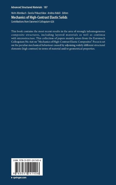 This book contains the most recent results in the area of strongly inhomogeneous composite structures, including layered materials as well as continua with microstructure. This collection of papers mainly arises from the Euromech Colloquium No. 626 on "Mechanics of High-Contrast Elastic Composites". Focus is set on the peculiar mechanical behaviour caused by adjoining widely different structural elements (high contrast) in terms of material and/or geometrical properties.