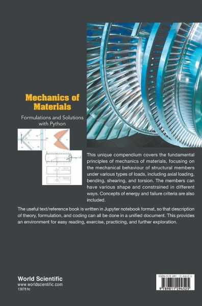 This unique compendium covers the fundamental principles of mechanics of materials, focusing on the mechanical behaviour of structural members under various types of loads, including axial loading, bending, shearing, and torsion. The members can have various shape and constrained in different ways. Concepts of energy and failure criteria are also included. The useful text/reference book is written in Jupyter notebook format, so that description of theory, formulation, and coding can all be done in a unified document. This provides an environment for easy reading, exercise, practicing, and further exploration.