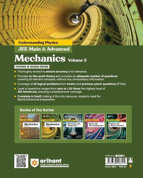 Mechanics Volume 2 for JEE Main and Advanced encompasses all the essential topics without any extra content. This book is designed in a modular format providing a concise yet complete theory coupled with an ample number of practice questions, illustrative examples, and exercises aimed at reinforcing understanding. Complete in itself, this is the only resource an aspirant need for Main and Advanced preparation. The key features included in this book are: ¿ To-the-point coverage of conceptual theory for quick revision and understanding. ¿ Adequate number of questions covering all relevant concepts, without any unnecessary information. ¿ Most exercises are accompanied by helpful hints to help in problem-solving ¿ Coverage of all logical problems from Irodov and previous years' questions (PYQs) ¿ Level of questions ranges from zero to 1.25 times the highest level of JEE Advanced