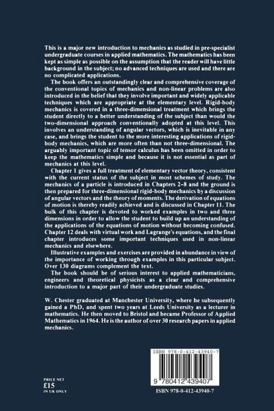 When I began to write this book, I originally had in mind the needs of university students in their first year. May aim was to keep the mathematics simple. No advanced techniques are used and there are no complicated applications. The emphasis is on an understanding of the basic ideas and problems which require expertise but do not contribute to this understanding are not discussed. How ever, the presentation is more sophisticated than might be considered appropri ate for someone with no previous knowledge of the subject so that, although it is developed from the beginning, some previous acquaintance with the elements of the subject would be an advantage. In addition, some familiarity with element ary calculus is assumed but not with the elementary theory of differential equations, although knowledge of the latter would again be an advantage. It is my opinion that mechanics is best introduced through the motion of a particle, with rigid body problems left until the subject is more fully developed. However, some experienced mathematicians consider that no introduction is complete without a discussion of rigid body mechanics. Conventional accounts of the subject invariably include such a discussion, but with the problems restricted to two-dimensional ones in the books which claim to be elementary. The mechanics of rigid bodies is therefore included but there is no separate discussion of the theory in two dimensions.