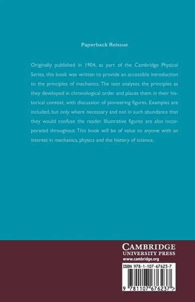 Originally published in 1904, as part of the Cambridge Physical Series, this book was written to provide an accessible introduction to the principles of mechanics. The text analyses the principles as they developed in chronological order and places them in their historical context, with discussion of pioneering figures. Examples are included, but only where necessary and not in such abundance that they would confuse the reader. Illustrative figures are also incorporated throughout. This book will be of value to anyone with an interest in mechanics, physics and the history of science.