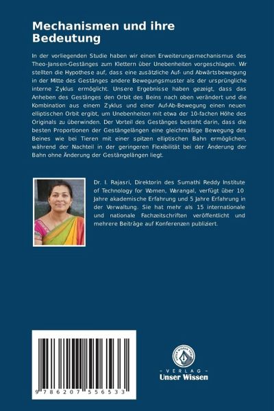In der vorliegenden Studie haben wir einen Erweiterungsmechanismus des Theo-Jansen-Gestänges zum Klettern über Unebenheiten vorgeschlagen. Wir stellten die Hypothese auf, dass eine zusätzliche Auf- und Abwärtsbewegung in der Mitte des Gestänges andere Bewegungsmuster als der ursprüngliche interne Zyklus ermöglicht. Unsere Ergebnisse haben gezeigt, dass das Anheben des Gestänges den Orbit des Beins nach oben verändert und die Kombination aus einem Zyklus und einer Auf-Ab-Bewegung einen neuen elliptischen Orbit ergibt, um Unebenheiten mit etwa der 10-fachen Höhe des Originals zu überwinden. Der Vorteil des Gestänges besteht darin, dass die besten Proportionen der Gestängelängen eine gleichmäßige Bewegung des Beines wie bei Tieren mit einer spitzen elliptischen Bahn ermöglichen, während der Nachteil in der geringeren Flexibilität bei der Änderung der Bahn ohne Änderung der Gestängelängen liegt.