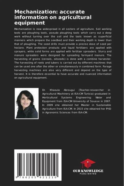 Mechanization is now widespread in all sectors of agriculture. Soil working tools are ploughing tools, pseudo ploughing tools which carry out a deep work without turning over the soil and the tools known as superficial manners which prepare the seedbed and their working depth is lower than that of ploughing. The seed drills must provide a precise dose of seed per hectare. Plant protection products and liquid fertilizers are applied with sprayers, while solid forms are applied with fertilizer spreaders. Slurry and manure spreaders were designed for spreading farmyard manure. The harvesting of grains (cereals, oilseeds) is done with a combine harvester. The harvesting of roots and tubers is carried out by different machines that can be used one after the other or simultaneously in combined form. Forage harvesting machines are also very different and depend on the type of harvest. It is therefore essential to have accurate and nuanced information on agricultural equipment.
