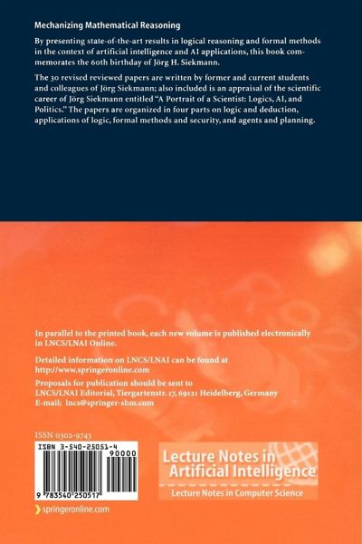 A Portrait of a Scientist: Logic, AI and Politics.- A Portrait of a Scientist: Logic, AI and Politics.- Logic and Deduction.- Some Reflections on Proof Transformations.- Rewrite and Decision Procedure Laboratory: Combining Rewriting, Satisfiability Checking, and Lemma Speculation.- SAT-Based Decision Procedures for Automated Reasoning: A Unifying Perspective.- Temporal Dynamics of Support and Attack Networks: From Argumentation to Zoology.- Footprints of Conditionals.- Time for Thinking Big in AI.- Solving First-Order Constraints over the Monadic Class.- From MKRP to ?MEGA.- Decidable Variants of Higher-Order Unification.- Normal Natural Deduction Proofs (in Non-classical Logics).- History and Future of Implicit and Inductionless Induction: Beware the Old Jade and the Zombie!.- The Flowering of Automated Reasoning.- Applications of Logics.- Description Logics as Ontology Languages for the Semantic Web.- Living Books, Automated Deduction and Other Strange Things.- An Essay on Sabotage and Obstruction.- Bridging Theorem Proving and Mathematical Knowledge Retrieval.- Formal Description of Natural Languages: An HPSG Grammar of Polish.- Psychological Validity of Schematic Proofs.- Natural Language Proof Explanation.- Why Proof Planning for Maths Education and How?.- Formal Methods and Security.- Towards MultiMedia Instruction in Safe and Secure Systems.- The Impact of Models in Software Development.- Formal Software Development in MAYA.- A Unification Algorithm for Analysis of Protocols with Blinded Signatures.- Exploiting Generic Aspects of Security Models in Formal Developments.- Verification Support Environment.- Agents and Planning.- SAT-Based Cooperative Planning: A Proposal.- Towards Comprehensive Computational Models for Plan-Based Control of Autonomous Robots.-Agents with Exact Foreknowledge.- Self-organisation in Holonic Multiagent Systems.