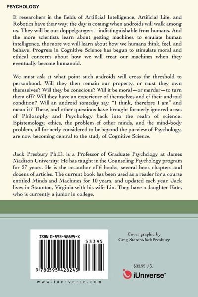 If researchers in the fields of Artificial Intelligence, Artificial Life, and Robotics have their way, the day is coming when androids will walk among us. They will be our doppelgangers-indistinguishable from humans. And the more scientists learn about getting machines to emulate human intelligence, the more we will learn about how we humans think, feel, and behave. Progress in Cognitive Science, has begun to stimulate moral and ethical concerns about how we will treat our machines when they eventually become humanoid. We must ask at what point such androids will cross the threshold to personhood. Will they then remain our property, or must they own themselves? Will they be conscious? Will it be moral-or murder-to turn them off? Will they have an experience of themselves and of their android condition? Will an android someday say, "I think, therefore I am" and mean it? These, and other questions have brought formerly ignored areas of Philosophy and Psychology back into the realm of science. Epistemology, ethics, the problem of other minds, and the mind-body problem, all formerly considered to be beyond the purview of Psychology, are now becoming central to the study of Cognitive Science.