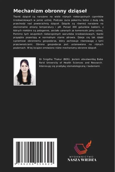 Tkanki dzi¿se¿ s¿ naräone na wiele ró¿nych niekorzystnych czynników ¿rodowiskowych w jamie ustnej. Podczas ¿ucia pokarmu bolus z du¿¿ si¿¿ przechodzi nad powierzchni¿ dzi¿se¿. Dzi¿s¿a s¿ równie¿ naräone na ekstremalne zmiany temperatury i pH. Ponad 300 gatunków bakterii, z których niektóre s¿ patogenne, zostäo uznanych za komensale jamy ustnej. Pomimo tych wszystkich niekorzystnych warunków ¿rodowiskowych, tkanki przyz¿bia pozostaj¿ w normalnym stanie zdrowia. Dzieje si¿ tak dzi¿ki systemowi obronnemu gospodarza, który zachowuje równowag¿ z tymi przeciwno¿ciami. Obrona gospodarza jest ustanawiana na ró¿nych poziomach. W tej ksi¿¿ce omówiono ró¿ne mechanizmy obronne dzi¿se¿.