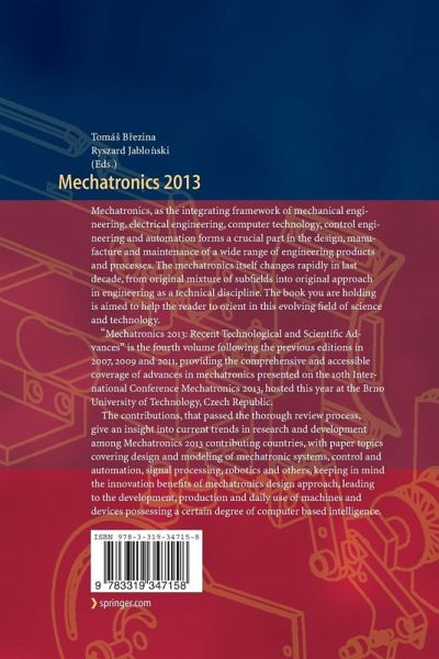 "Mechatronics 2013: Recent Technological and Scientific Advances" is the fourth volume following the previous editions in 2007, 2009 and 2011, providing the comprehensive and accessible coverage of advances in mechatronics presented on the 10th International Conference Mechatronics 2013, hosted this year at the Brno University of Technology, Czech Republic.
