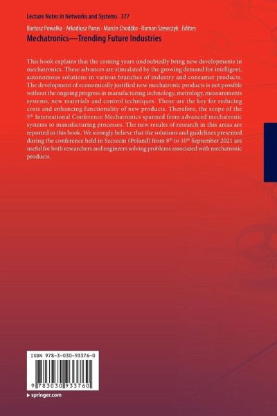 This book explains that the coming years undoubtedly bring new developments in mechatronics. These advances are stimulated by the growing demand for intelligent, autonomous solutions in various branches of industry and consumer products. The development of economically justified new mechatronic products is not possible without the ongoing progress in manufacturing technology, metrology, measurements systems, new materials and control techniques. Those are the key for reducing costs and enhancing functionality of new products. Therefore, the scope of the 5th International Conference Mechatronics spanned from advanced mechatronic systems to manufacturing processes. The new results of research in this areas are reported in this book. We strongly believe that the solutions and guidelines presented during the conference held in Szczecin (Poland) from 8th to 10th September 2021 are useful for both researchers and engineers solving problems associatedwith mechatronic products.