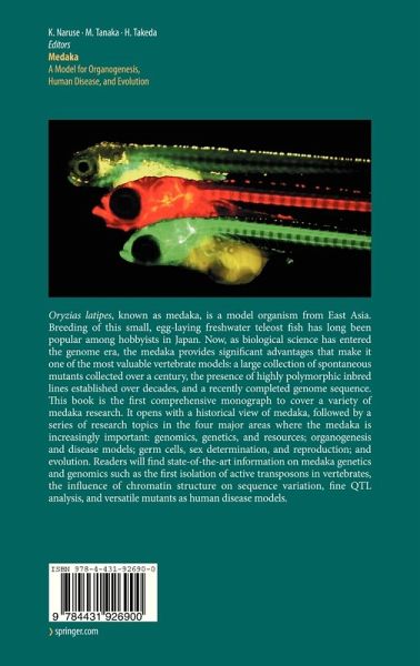Oryzias latipes, known as medaka, is a model organism from East Asia. Breeding of this small, egg-laying freshwater teleost fish has long been popular among hobbyists in Japan. Now, as biological science has entered the genome era, the medaka provides significant advantages that make it one of the most valuable vertebrate models: a large collection of spontaneous mutants collected over a century, the presence of highly polymorphic inbred lines established over decades, and a recently completed genome sequence. This book is the first comprehensive monograph to cover a variety of medaka research. It opens with a historical view of medaka, followed by a series of research topics in the four major areas where the medaka is increasingly important: genomics, genetics, and resources; organogenesis and disease models; germ cells, sex determination, and reproduction; and evolution. Readers will find state-of-the-art information on medaka genetics and genomics such as the first isolation of active transposons in vertebrates, the influence of chromatin structure on sequence variation, fine QTL analysis, and versatile mutants as human disease models.