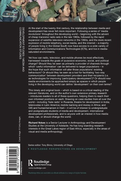 At the start of the 21st century, the relationship between media and development has never felt more important. Following a series of 'media revolutions' throughout the developing world - beginning with the advent of cheap transistor radio sets in the late-1960s, followed by the rapid expansion of satellite television networks in the 1990s, and the more recent explosion of mobile telephony, social media and the internet - a majority of people living in the Global South now have access to a wide variety of Information and Communications Technologies (ICTs), and live in media saturated environments. ¿ Yet how can radio, television and mobile phones be most effectively harnessed towards the goals of purposive economic, social, and political change? Should they be seen as primarily a provider of channels through which 'useful information' can be delivered to target populations - in the hope that such information will alter those populations' existing behaviours? Or should they be seen as a tool for facilitating 'two-way communication' between development providers and their recipients (i.e. as technologies for improving 'participatory development')? Or should new media environments be approached simply as sites in which people living in the developing world can define 'development' on their own terms? This timely and original book - which is based on a critical reading of the relevant literatures, and on the author's own extensive primary research - introduces readers to all of these questions, and helps them to reach their own informed positions on each. It also examines the history of, and current debates regarding, media representations of development. Drawing on case studies from all over the world - including: 'hate radio' in Rwanda; theatre for development in India; telenovelas in Latin America; mobile banking and money in Africa, and; GIS and humanitarianism in Haiti - it will be of interest to all undergraduate and postgraduate students of media and development; international development professionals, and; simply to anyone with an interest in how media does, can, or should, change the world.