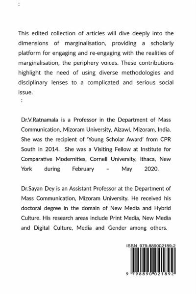 This edited collection of articles will dive deeply into the dimensions of marginalisation, providing a scholarly platform for engaging and re-engaging with the realities of marginalisation, the periphery voices. These contributions highlight the need of using diverse methodologies and disciplinary lenses to a complicated and serious social issue. The collection is distinctive in that it includes both theoretical viewpoints and case studies on media representation of Northeast India, women and media and gender in media.