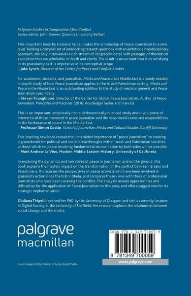 "Giuliana Tiripelli discusses the power and the role of the media in the Israeli-Palestinian conflict. ... this book deals with the very complex topic of the Israeli-Palestinian conflict as it tries to explain the role of journalism or rather peace journalism in it. The ideas postulated in this book constitute an ideal project to make peace journalism a substantial and tangible contribution to this decades - long conflict ... ." (Natasa Bakic-Miric, European Journal of Communication, Vol. 32 (06), 2018)