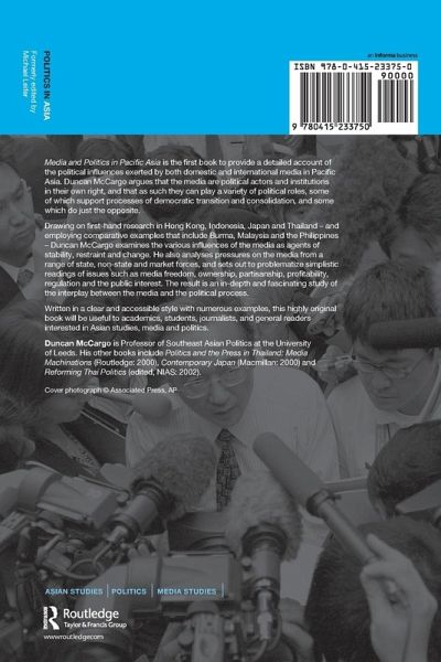 Media and Politics in Pacific Asia is the first book to provide a detailed account of the political influences exerted by both domestic and international media in Pacific Asia. Duncan McCargo argues that the media are political actors and institutions in their own right, and that as such they can play a variety of political roles, some of which support processes of demographic transition and consolidation, and some which do just the opposite. Drawing on first-hand research in Hong Kong, Indonesia, Japan and Thailand - and employing comparative examples that include Burma, Malaysia and the Phillipines - Duncan McCargo examines the various influences of the Media as agents of stability, restraint and change. He also analyses pressures on the media from a range of state, non-state and market forces, and sets out to problematize simplistic readings of issues such as media freedom, ownership, partisanship, profitability, regulation and public interest. The result is an in-depth and fascinating study of the interplay between the media and the political process. Written in a clear and accessible style with numerous examples, this highly original book will be useful to academics, students, journalists, and general readers interested in Asian studies, media and politics.