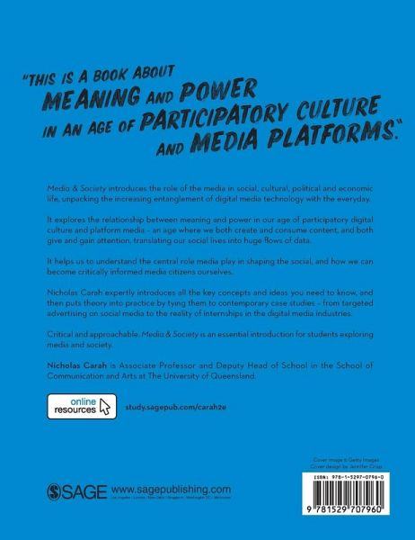 Media & Society expertly introduces all the key concepts and ideas you need to know, and then puts theory into practice by tying them to contemporary case studies. From using Ghostery to track how your personal data is being collected, to exploring misinformation on social media via Youtube, to the reality of internships and freelancing in today s digital media industry.