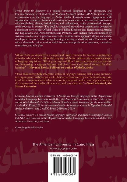 "With the proliferation of satellite television news and social media channels, students of Modern Standard Arabic (MSA) have access to an increasingly vast range of print and broadcast news from the Arab world. Media Arabic for Beginners is a unique textbook designed to lead elementary and low intermediate level students of MSA to a solid level of proficiency in the language of Arabic media. Through active engagement with authentic texts selected from a wide variety of news sources and websites, learners are familiarized with vocabulary, idioms, lexical items, and collocations, while grammatical concepts are introduced and explained in context. With sixteen texts accompanied by sixteen audio files and supportive PowerPoint presentations, this content-based approach allows students to develop and enhance their reading, listening, speaking, and writing skills. Vocabulary and grammatical points are presented as PowerPoint slides, making for discrete and manageable learning targets. Media Arabic for Beginners is structured around four themes, each devoted to a dominant news topic: Official Visits and Talks; Elections and Referendums; Attacks and Explosions; and Demonstrations and Protests. Each unit is in turn made up of four lessons, each lesson featuring a text from a particular perspective together with pre-reading activities, reading activities, post-reading activities, and a section with particular focus on grammar. The texts progress from very simple to more complex, as students steadily increase their reading fluency. Each unit ends with a thorough review section with various activities, such as comprehension questions, vocabulary translation, and role play."--