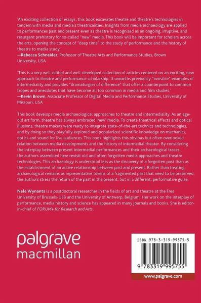 This book develops media archaeological approaches to theatre and intermediality. As an age-old art form, theatre has always embraced 'new' media. To create theatrical effects and optical illusions, theatre makers were ready to integrate state-of-the-art technics and technologies, and by doing so they playfully explored and popularized scientific knowledge on mechanics, optics and sound for live audiences. This book highlights this obvious but often overlooked relation between media developments and the history of intermedial theater. By considering the interplay between present intermedial performances and their archaeological traces, the authors assembled here revisit old and often forgotten media approaches and theatre technologies. This archaeology is understood less as the discovery of a forgotten past than as the establishment of an active relationship between past and present. Rather than treating archaeological remains as representative tokens of a fragmented past that need tobe preserved, the authors stress the return of the past in the present, but in a different, performative guise.