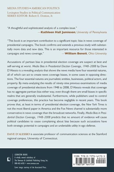In Media Bias in Presidential Election Coverage 1948-2008, Dave D’Alessio employs meta-analytic techniques to examine whether there are partisan biases in coverage of Presidential election campaigns in newspapers, on TV, and in the news magazines. This study further analyses the four essential natures of news media: as journalistic entities, property, businesses, and political actors. Aggregating the results of 99 previous studies, D’Alessio scrutinizes bias claims in news media, and why political candidates consistently make such accusations.