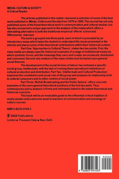 Media, Culture & Society has pioneered a unique approach to media analysis. Since 1979, it has published some of the finest theoretical and historical work in communication and cultural studies from Britain and Europe. The articles in this reader are grouped in three parts, representing a selection of the best work. Each part is preceded by an introductory essay which helps students understand the issues presented, and places the theoretical contributions in context.