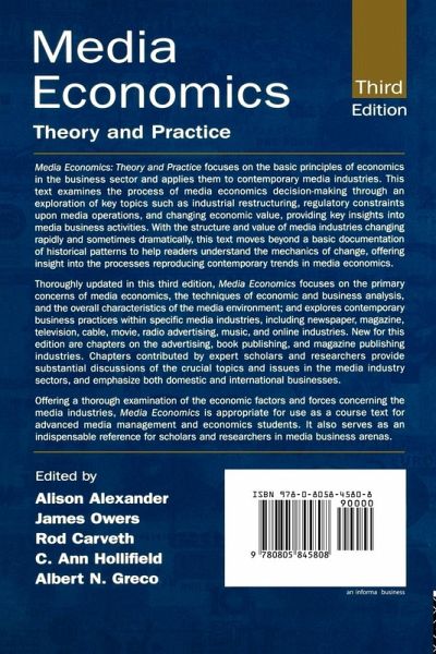 Media Economics: Theory and Practice focuses on the basic principles of economics in the business sector and applies them to contemporary media industries. This text examines the process of media economics decision making through an exploration of key topics, such as industrial restructuring, regulatory constraints upon media operations, and changing economic value, providing key insights into media business activities. With the structure and value of media industries changing rapidly and sometimes dramatically, this text moves beyond a basic documentation of historical patterns to help readers understand the mechanics of change, offering insight into the processes reproducing contemporary trends in media economics. Thoroughly updated in this third edition, Media Economics focuses on the primary concerns of media economics, the techniques of economic and business analysis, and the overall characteristics of the media environment; and explores contemporary business practices within specific media industries, including newspaper, magazine, television, cable, movie, radio advertising, music, and online industries. New for this edition are chapters on the advertising, book publishing, and magazine publishing industries. Chapters contributed by expert scholars and researchers provide substantial discussions of the crucial topics and issues in the media industry sectors, and emphasize both domestic and international businesses. Offering a thorough examination of the economic factors and forces concerning the media industries, Media Economics is appropriate for use as a course text for advanced media management and economics students. It also serves as an indispensable reference for scholars and researchers in media business arenas.