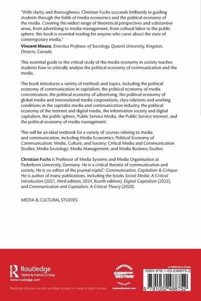 "With clarity and thoroughness, Christian Fuchs succeeds brilliantly in guiding students through the fields of media economics and the political economy of the media. Covering the widest range of theoretical perspectives and substantive areas, from advertising to media management, from cultural labor to the public sphere, this book is essential reading for anyone who cares about the state of contemporary media."